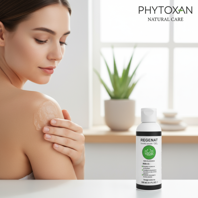 REGENAT Gel 250ml est un soin 99% naturel conçu pour soulager les démangeaisons, irritations, rougeurs et inflammations, tout en favorisant la régénération cellulaire. Grâce à sa formule enrichie en Aloe Vera, Camomille, Extrait d’escargot, Acide Hyaluronique, Vitamine E et Panthénol, il offre une action hydratante, apaisante et réparatrice.